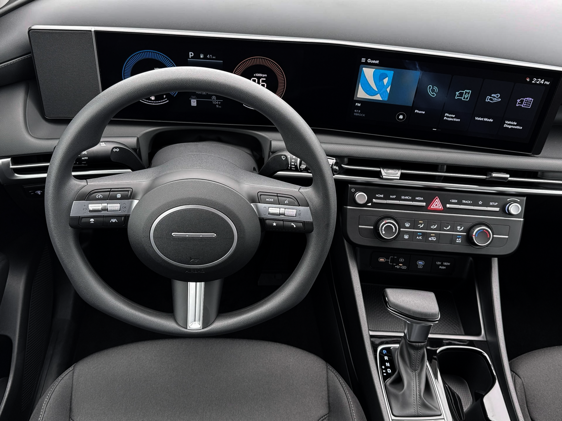 - Radio: AM/FM/HD Audio System -inc: 12.3" color touchscreen display, 6 speakers, SiriusXM satellite radio system (3-month trial subscription), wireless Apple CarPlay and Android Auto integration, controller OTA update capability, Blue Link connected car system and USB connectivity