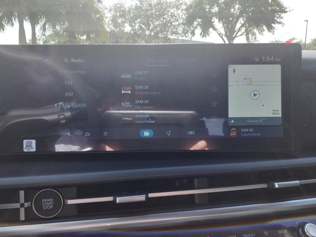 • Radio: AM/FM/HD Display Audio -inc: 6 speakers, 12.3" wide touchscreen display, Apple CarPlay, Android Auto, Bluetooth® hands-free w/wireless audio streaming, dynamic voice recognition, USB connectivity, SiriusXM, Blue Link+ connected car system, over-the-air updating capability, navigation system including traffic flow w/incident data via HD Radio (HERE) and rear seat quiet mode