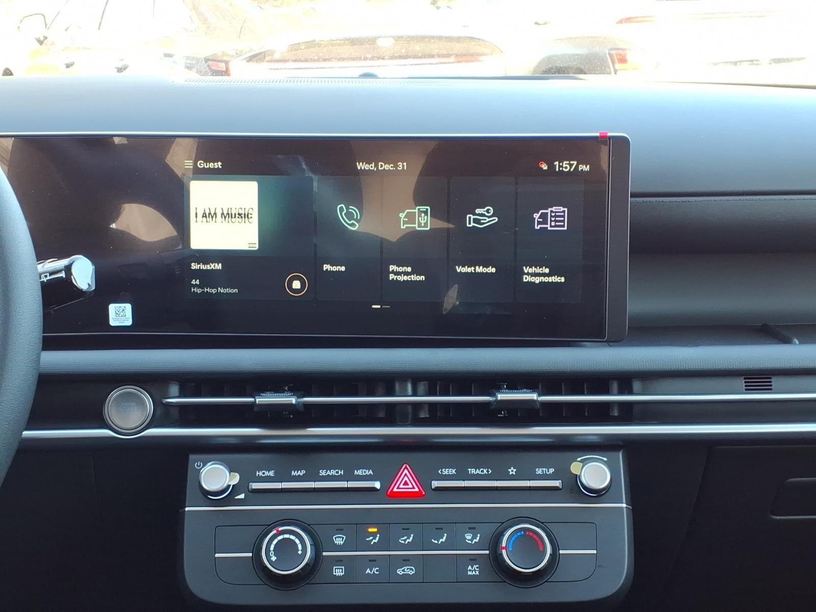 - Radio: AM/FM/HD Audio System -inc: 12.3" color touchscreen display, 6 speakers, SiriusXM satellite radio system (3-month trial subscription), wireless Apple CarPlay and Android Auto integration, controller OTA update capability, Blue Link connected car system and USB connectivity