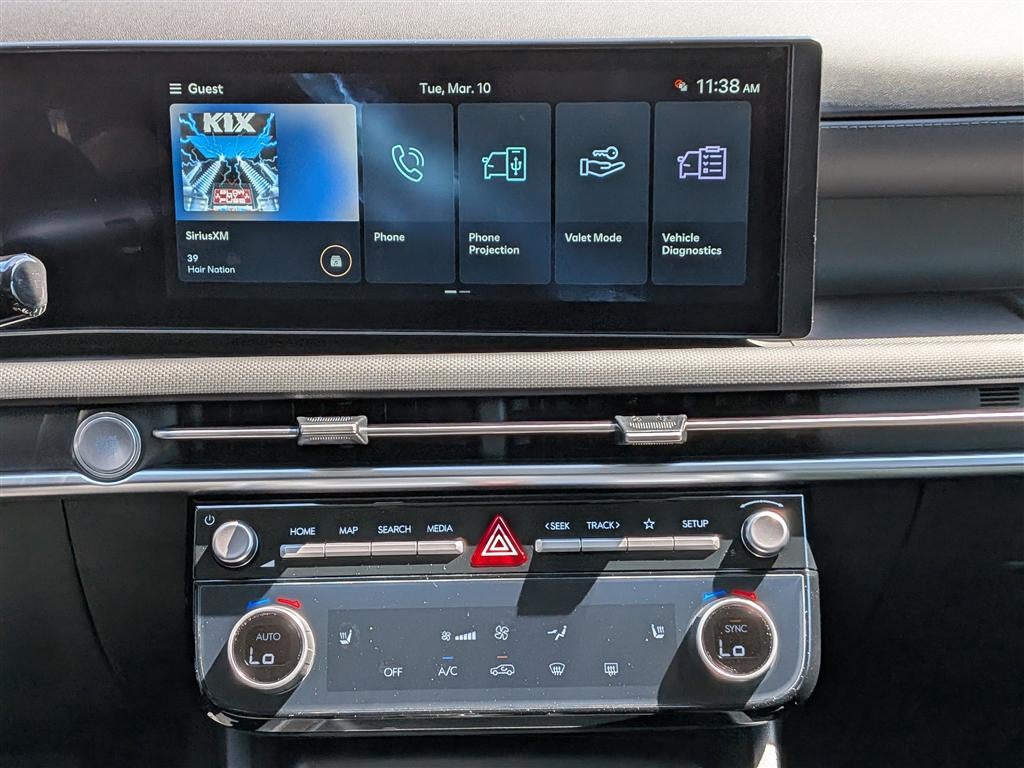 • Radio: AM/FM/HD Audio System -inc: 12.3" color touchscreen display, 6 speakers, SiriusXM satellite radio system (3-month trial subscription), wireless Apple CarPlay and Android Auto integration, controller OTA update capability, Blue Link connected car system and USB connectivity