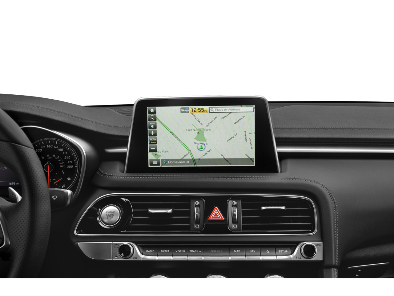 - Radio: AM/FM/HD Radio/SiriusXM Lexicon Audio -inc: 660-Watt, 8-inch 720P HD touchscreen display, integrated navigation, HD Traffic, 15-high-efficiency speakers including 2 subwoofers, 11-channel digital external amplifier, speed-sensing auto volume control, Bluetooth® hands-free phone system, Android Auto, Apple CarPlay, 2 front USB ports, auxiliary input jack and Genesis Connected Services telematics