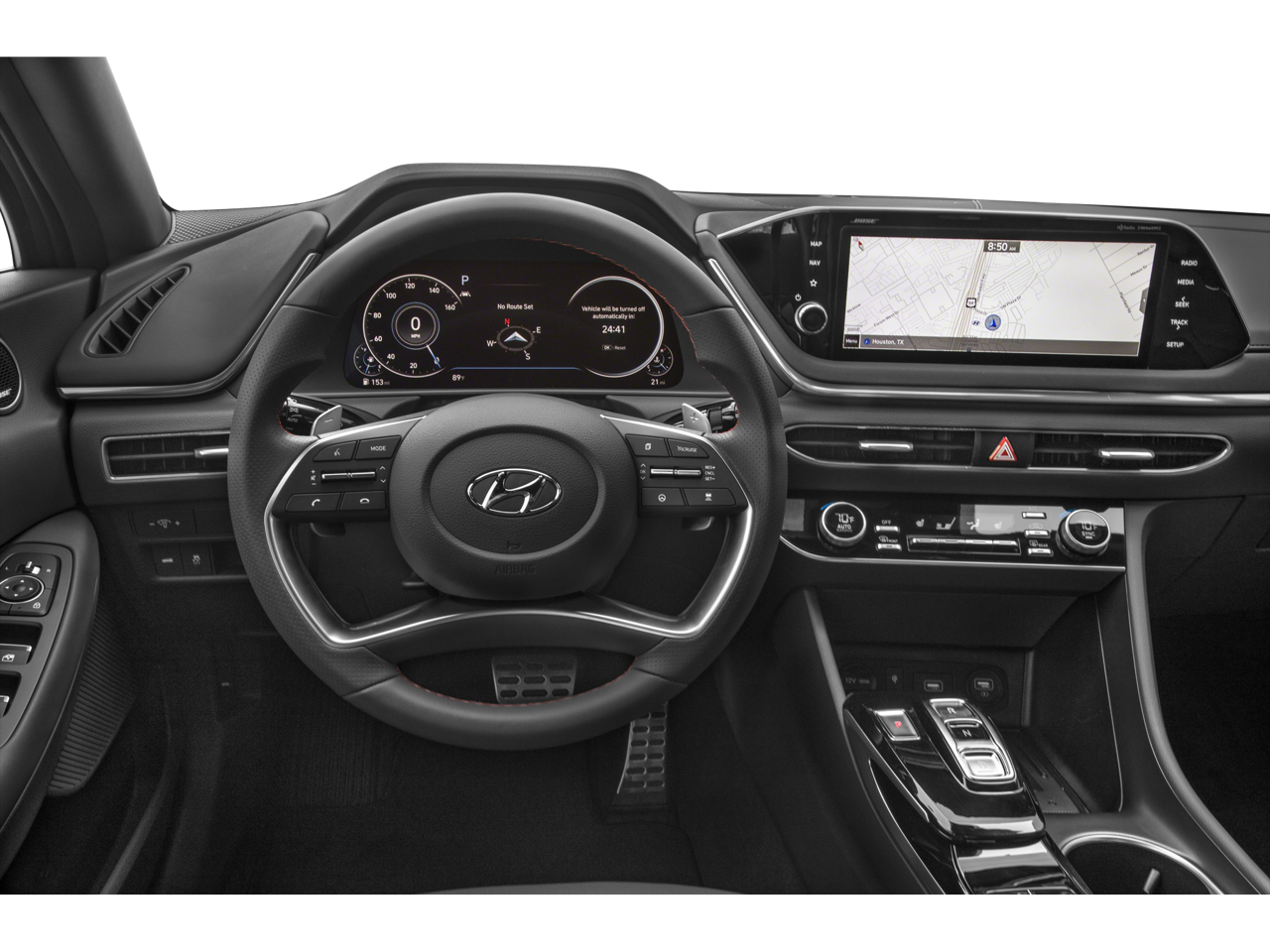 • Radio: AM/FM/MP3/HD/SiriusXM Display Audio w/Nav -inc: 10.25" color touchscreen, Bose premium audio w/12 speakers (1 center channel, 2 dash, 2 front tweeters, 4 door mounted, 2 rear mounted speakers plus 1 rear mounted subwoofer), dynamic voice recognition, integrated Bluetooth®, Blue Link connected car system, Apple CarPlay, Android Auto, USB, diversity antenna for navigation and HERE HD traffic