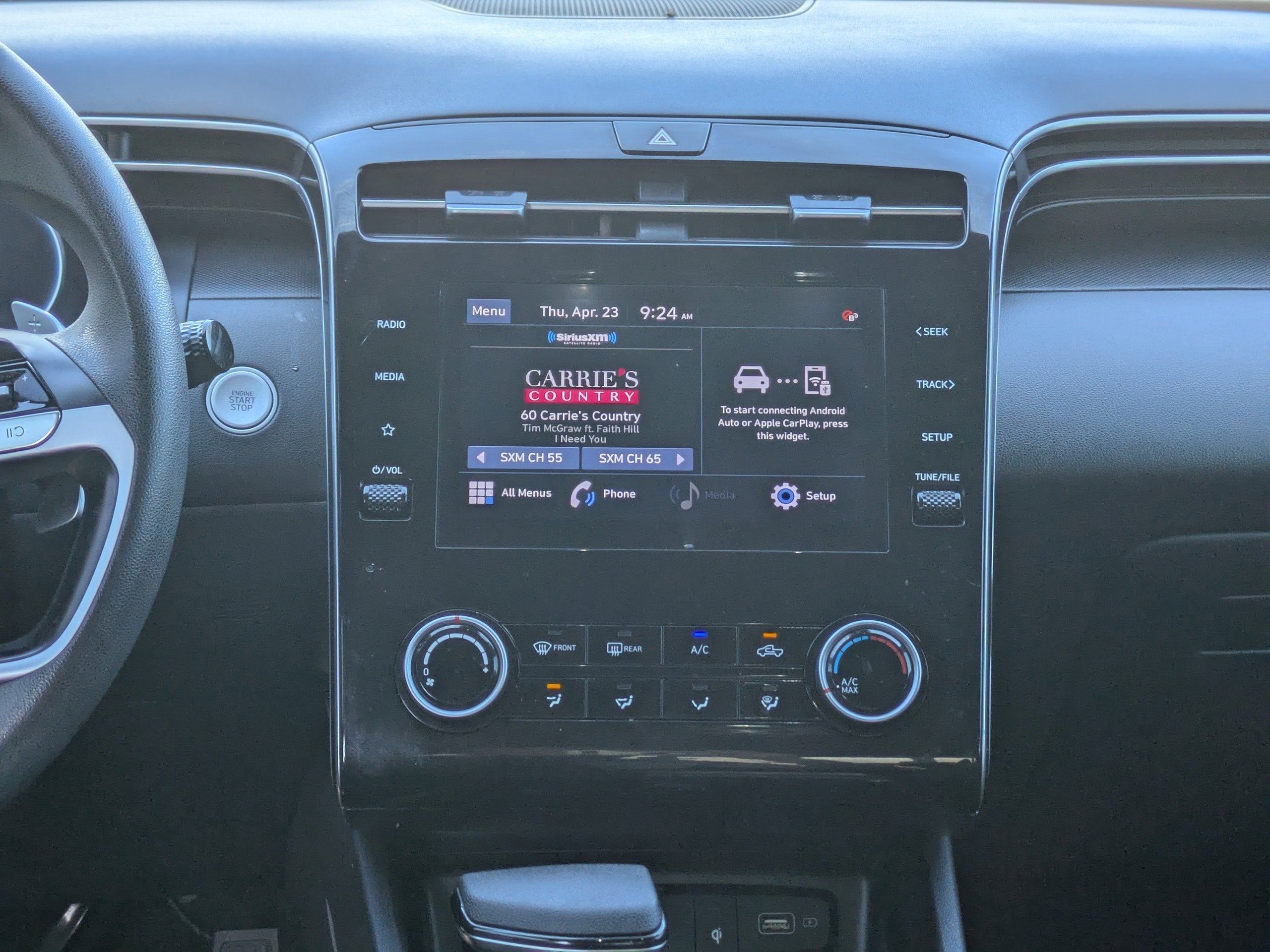 - Radio: AM/FM/HD Audio System -inc: 8" color touchscreen, 6 speakers, SiriusXM satellite radio w/3-month trial subscription, Blue Link connected car system, Bluetooth®, Apple CarPlay and Android Auto and USB connectivity